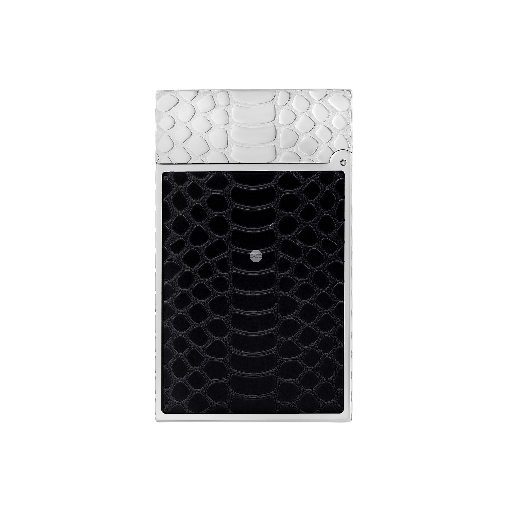 Ligne 2 Cling lighter, guilloche under lacquer, black Snake skin motif, palladium finish.
