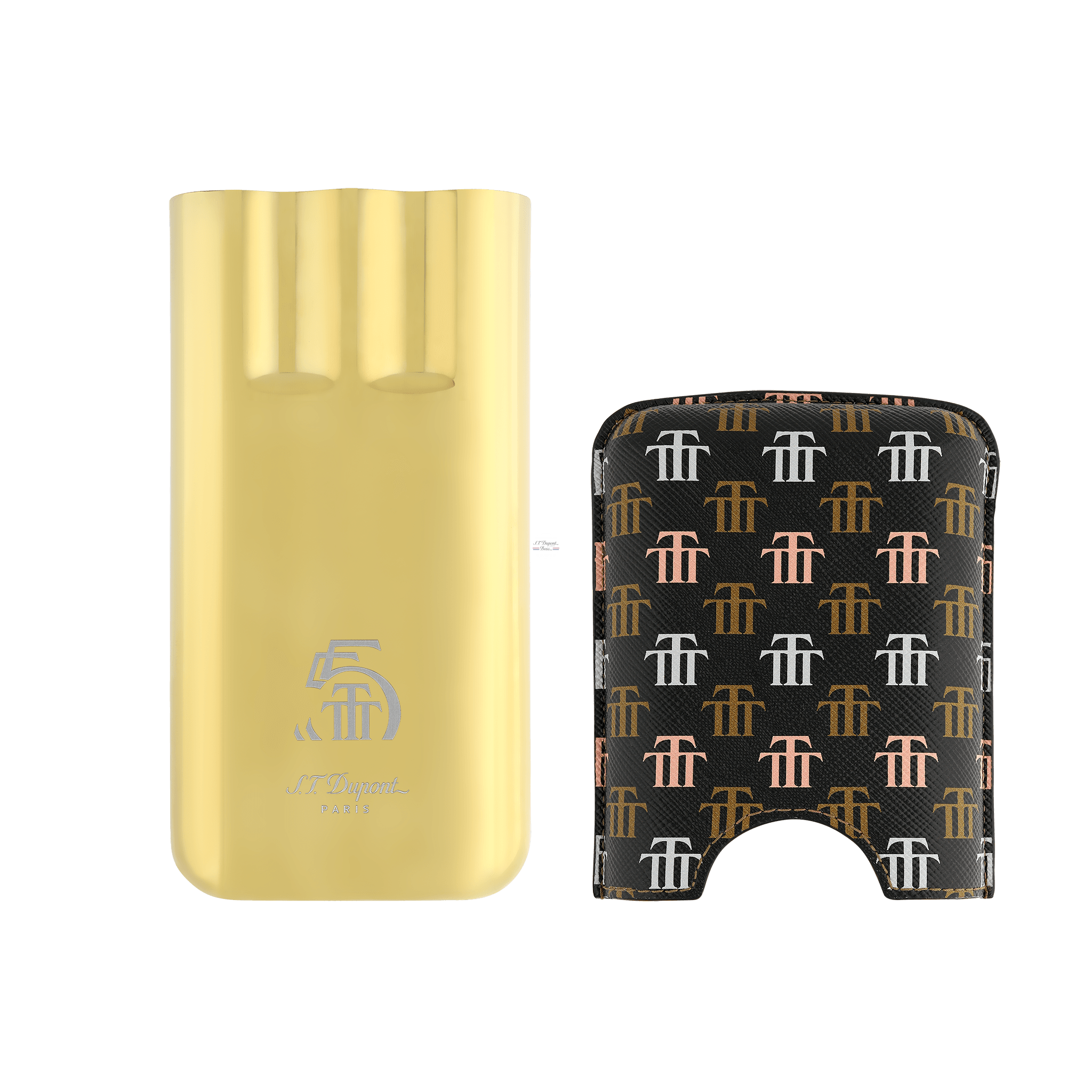 Deep blacks and three shades of sunny gold, recalling the soft colours of the city of Trinidad and the refined work of tobacco artisans, the monogram of the Trinidad house illuminates S.T. lighters and accessories. Dupont lighters and accessories.